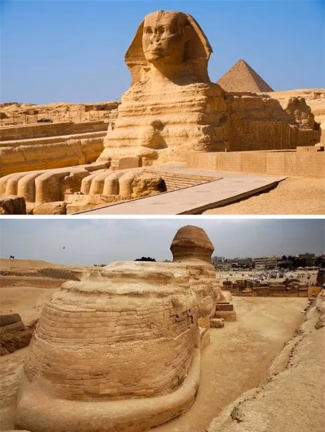 Tác phẩm nghệ thuật tuyệt đẹp này thường được biết đến với hình ảnh đầu người, mình sư tử ở mặt trước. Trên thực tế, Nhân sư là một sinh vật thần thoại với đầu của con người, chim ưng, mèo hoặc cừu và cơ thể của một con sư tử với đôi cánh của đại bàng.
