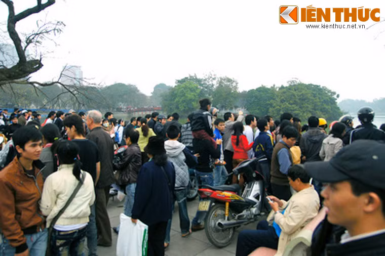 Khi có tin rùa nổi, bờ Hồ Gươm sẽ chật kín người đổ về với hi vọng được "chiêm ngưỡng" sinh vật hot nhất Thủ đô.