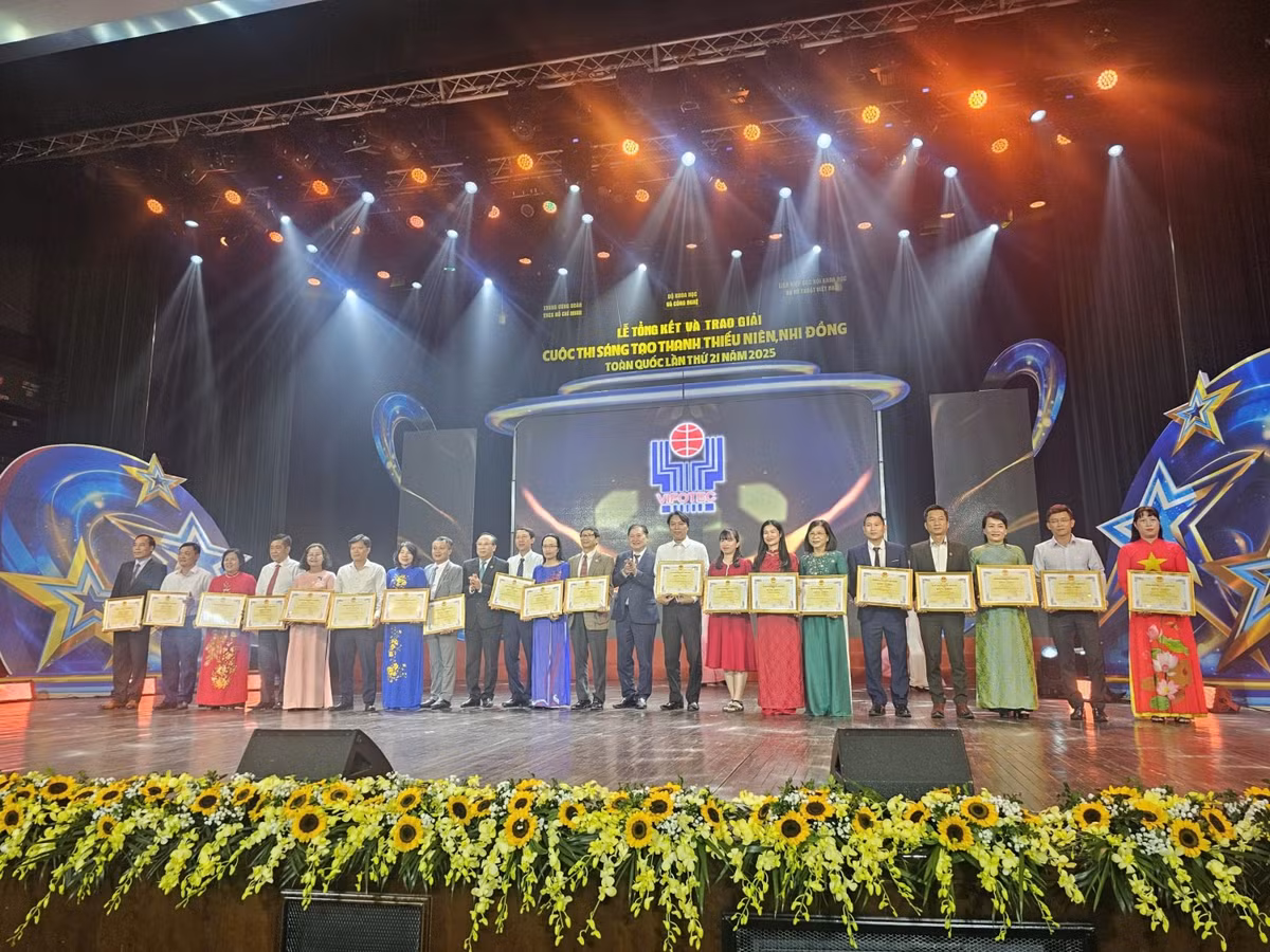 Các tác giả, nhóm tác giả được trao Giải Nhất tại lễ trao giải Cuộc thi sáng tạo thanh thiếu niên, nhi đồng toàn quốc lần thứ 21, năm 2025