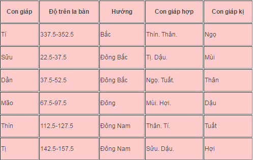 | (Mỗi con giáp chiếm 1 góc 30 độ trên la bàn) |
