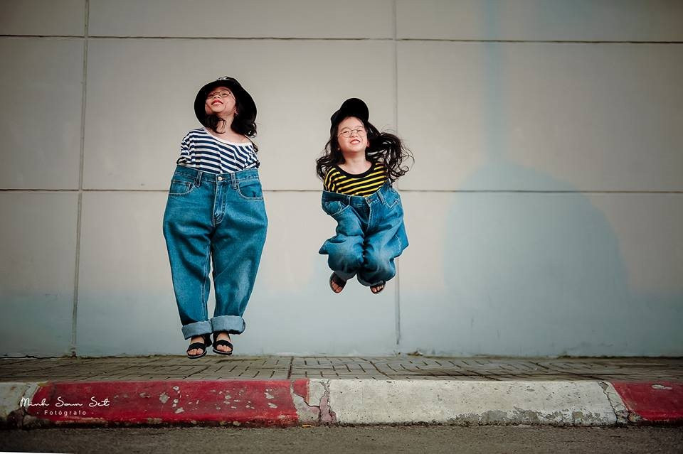 Mượn quần jean của ông ngoại làm phục trang chụp hình, với những biểu cảm dễ thương cùng cách tạo dáng tinh nghịch, bộ ảnh của 2 bé gái khiến dân mạng khoái chí "cười bò".