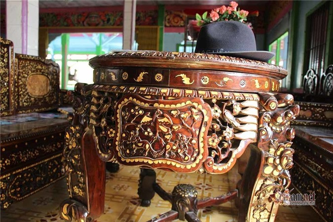 Du khách tham quan, chụp hình cùng bộ bàn ghế một thời của công tử Bạc Liêu.