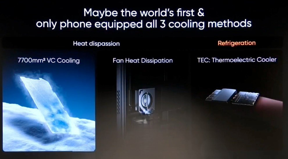 Thiết bị còn lại là “Chill Fan Phone” – chiếc smartphone đầu tiên trên thế giới được trang bị công nghệ làm mát AC Cooling. Khác với quạt thông gió vốn quen thuộc trên các dòng gaming phone, hệ thống AC Cooling của realme được quảng bá như “mini điều hòa” bên trong điện thoại.