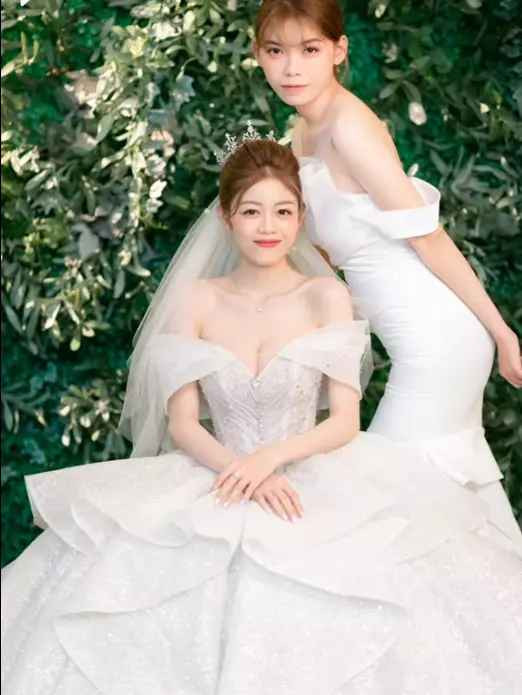Cả hai cô gái đều khoác trên mình bộ váy cưới lộng lẫy, liên tục tạo dáng tình tứ bên nhau. Gương mặt của cặp đôi lúc nào cũng toát lên sự hạnh phúc, mãn nguyện.