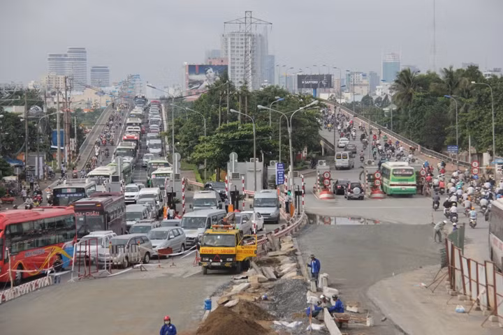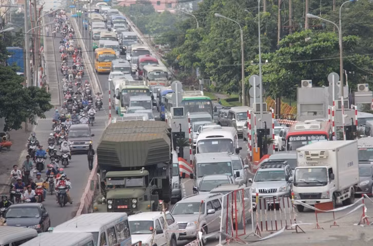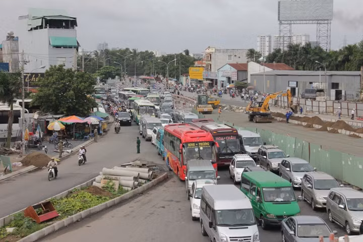 | Tuy nhiên, tại khu vực cửa ngõ thành phố ngay trạm thu phí vốn là điểm đen kẹt xe của TP.HCM vẫn còn ngổn ngang với công trình xây dựng vành đai ngoài làm mặt đường bị thu hẹp... |