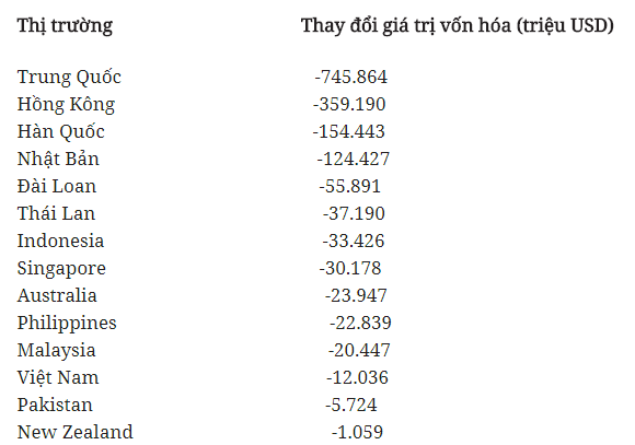 | Riêng thị trường Trung Quốc mất 746 tỷ USD vốn hóa trong 2 tuần qua. |