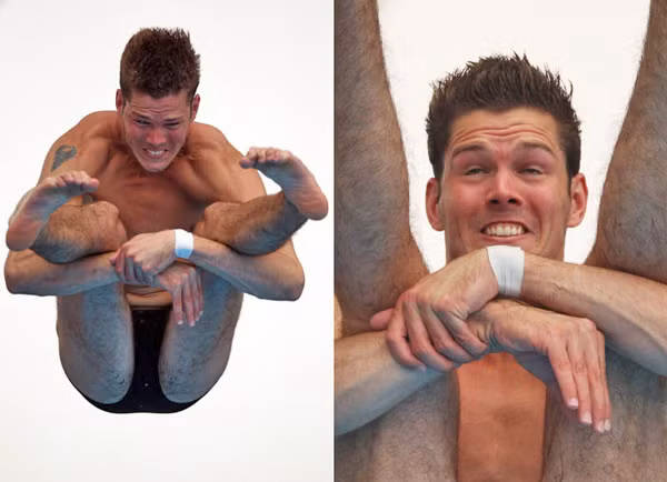 Gương mặt hài hước của các VĐV nhảy cầu.