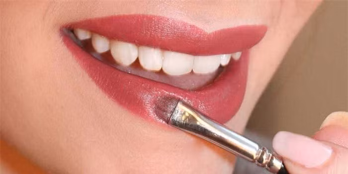 Nên chọn loại cọ nhỏ tương đối bông, sau khi nhúng phấn trang điểm trước, lấy một ít phấn thừa rồi ấn nhẹ lên môi. Làm theo cách này để tạo lớp ngăn cách giúp son không bị trôi sau khi ăn uống.