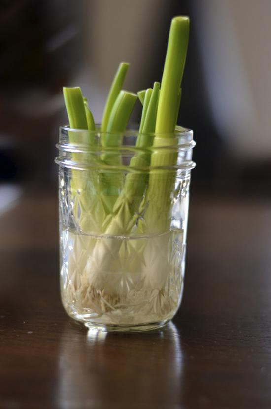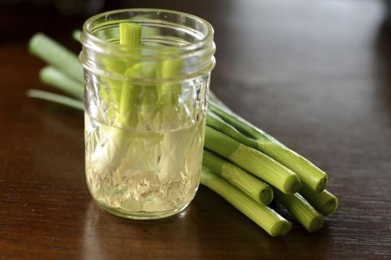 Không cần đất, cũng chẳng cần phân bón, bạn có thể trồng hành lá thủy canh trong cốc thủy tinh như sau.