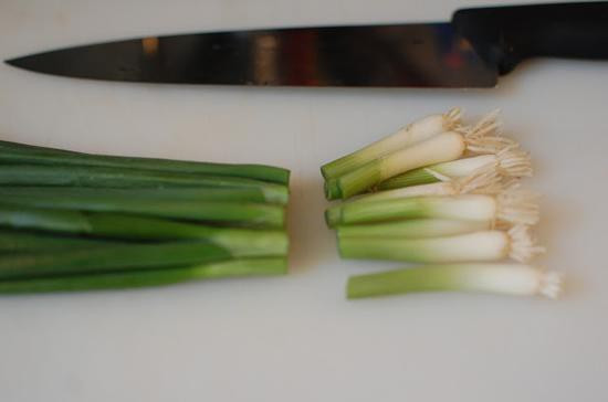 Trước tiên, chọn cây hành lá khỏe với thân xanh, mập mạp và gốc trắng dài từ 2-7cm. Sau đó cắt phần lá xanh của hành để nấu ăn như bình thường và giữ lại phần gốc màu trắng nguyên vẹn, đoạn gốc hành dài khoảng 5 - 7cm.