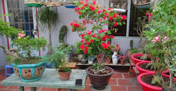 Cây điệp lào vốn leo hàng rào thành bonsai