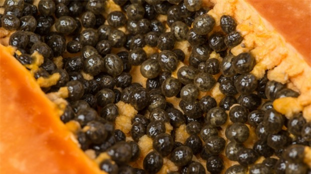 Khi ăn đu đủ, chúng ta thường bỏ hạt đi, nhưng ít ai biết rằnghạt đu đủ rất giàu enzyme papain,một chất tự nhiên có hoạt tính mạnh nhất giúp phá vỡ protein khó tiêu trong đường tiêu hóa,tăng cường khả năng tiêu hóa.