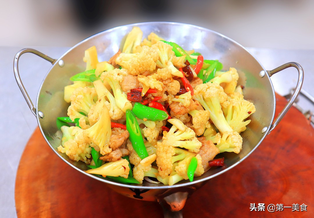 Bước 5: Đun nóng dầu trong nồi và tráng qua toàn chảo, sau đó đổ dầu nóng đi và cho vào một ít dầu lạnh, cho các lát thịt vào xào. Xào đến khi thịt có mùi thơm thì cho tỏi, ớt, hành tây, thêm một ít rượu nấu ăn để khử mùi tanh, rồi đổ súp lơ vào đảo đều.