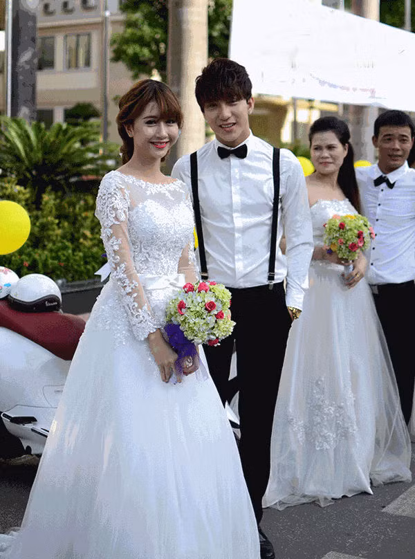 30 cặp cô dâu chú rể thực hiện lễ rước dâu bằng xe Vespa. Đoàn diễu hành được dẫn đầu bởi siêu xe Bentley.