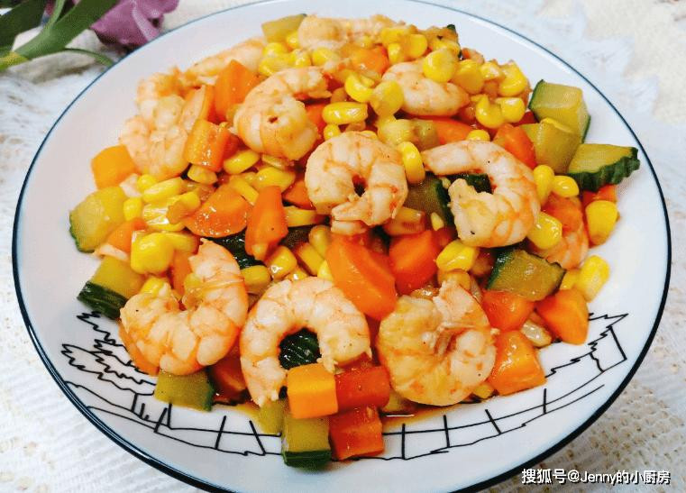 2. Tôm xào dưa chuột, cà rốt và ngô