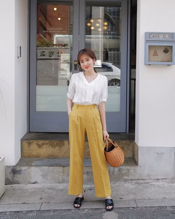 | Để diện đồ với gam vàng được trở nên tinh tế nhất, các bạn gái nên mix với những món đồ có tông màu trung tính như đen trắng để tổng thể được hài hòa. |
