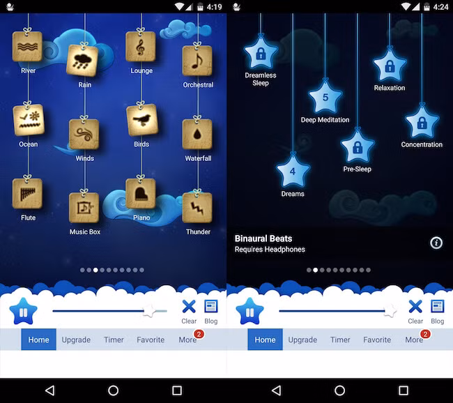 Việc gắn nút bịt lỗ tai, nghe nhạc thật to để hạn chế tiếng ồn xung quanh trước khi đi ngủ chỉ càng khiến bạn thêm mất tập trung. Lúc này, ứng dụng Relax Melodies (https://goo.gl/t94qs) sẽ là sự lựa chọn thích hợp.