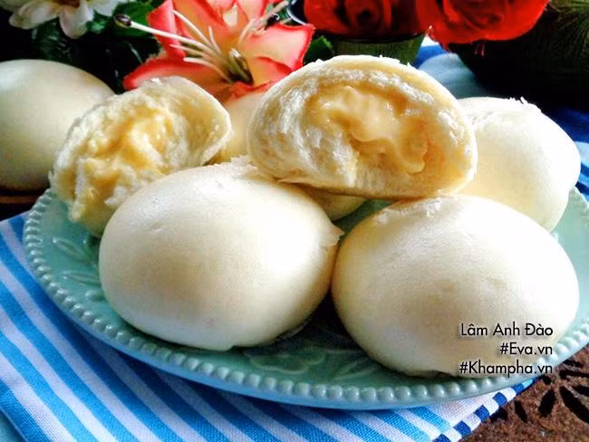 Bánh bao nhân kem phô mai tan chảy ngay khi bạn xé bạn, mùi thơm loa tỏa, vị béo ngậy khi chạm môi.