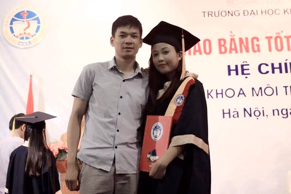 Năm 2014, anh về dự lễ tốt nghiệp của chị.