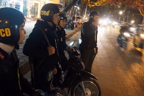 Theo đó, hàng chục cán bộ chiến sĩ lại toả đi đến những nơi được xác định là các thanh niên thường hay tụ tập “chém gió” hay chuẩn bị đua xe máy như khu vực cửa Nhà hát lớn, hồ An Biên, đường Tô Hiệu hay ngã tư Thành Đội...