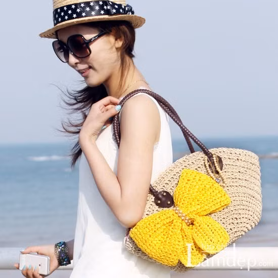 Mang đậm chất mùa hè, chiếc túi này là sự lựa chọn chuẩn xác cho những bạn thích sự gọn nhẹ cho những chuyến du lịch xa. Thiết kế nữ tính với len tròn cuộn xung quanh hẳn sẽ làm bạn nổi bật trong những bức ảnh kỷ niệm.