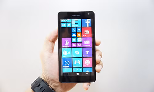 | Mặt trước giờ đây không còn logo Nokia nữa, thay vào đó là logo của Microsoft |