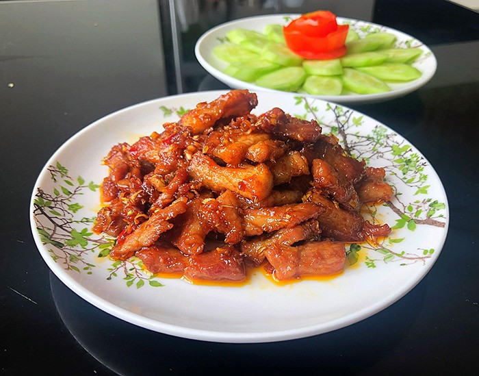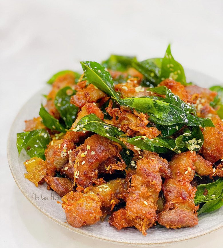 Những miếng thịt ba chỉ chiên đậm đà gia vị, ngọt, thơm mùi sả thực sự hấp dẫn.