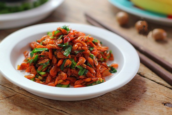 - Sau đó cho tép vào đảo cho đến khi đổi màu và có mùi thơm.