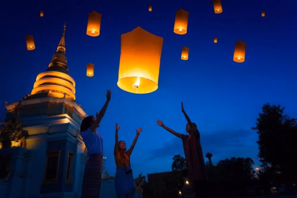 Cùng với người yêu thả những đèn lồng cũng là việc không thể thiếu vào ngày này. Những chiếc đèn lồng đại diện cho những mong ước của các cặp đôi cho một tổ ấm lâu dài.