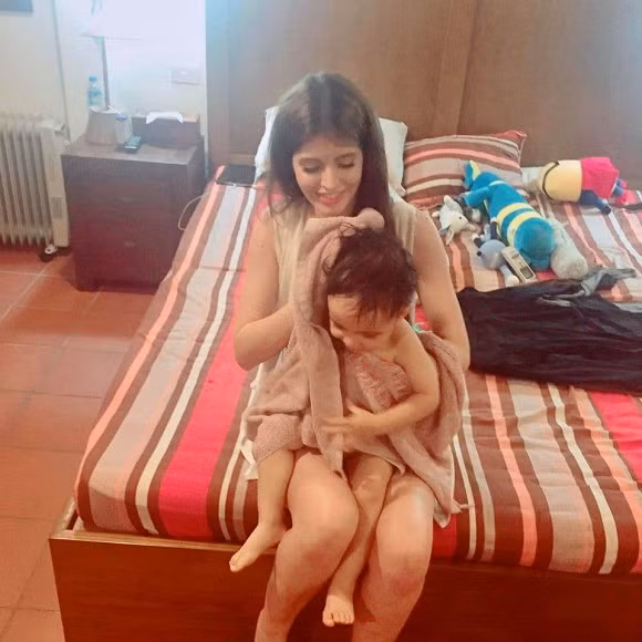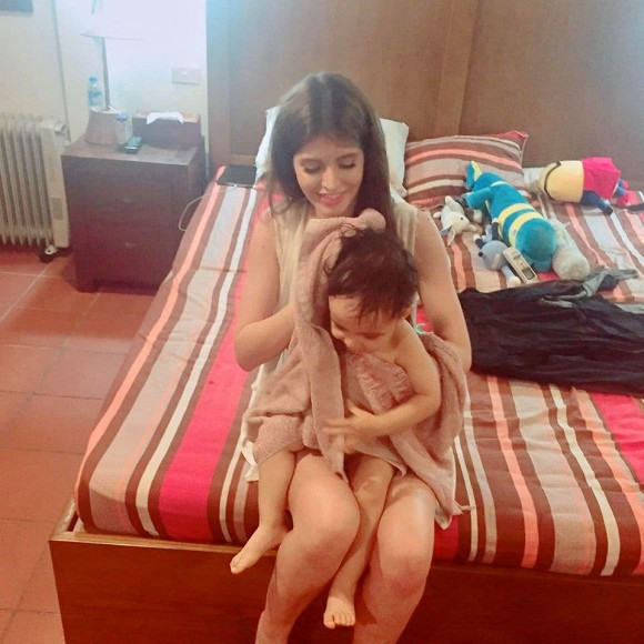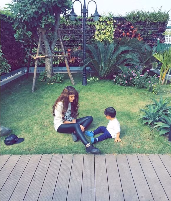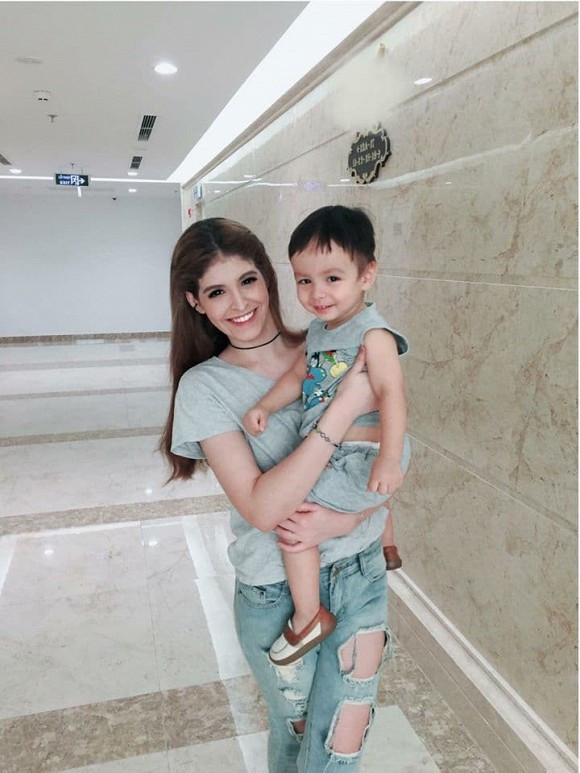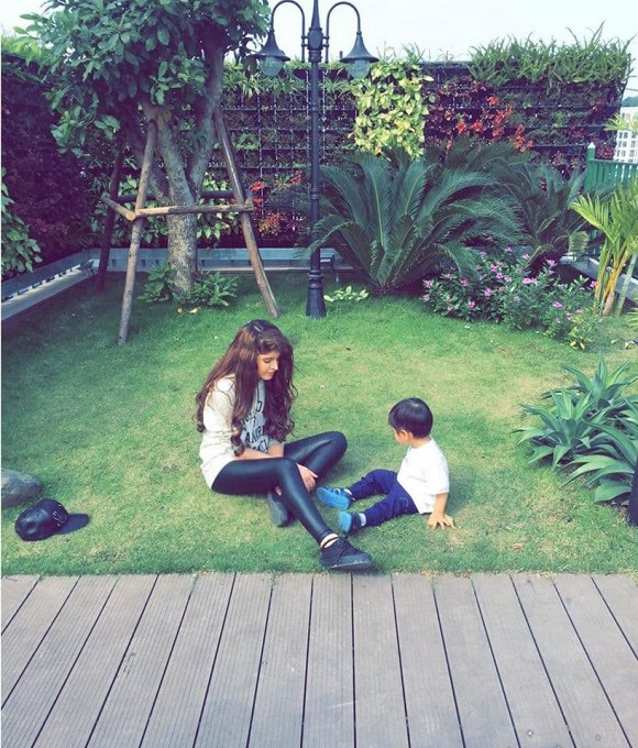 Ngoài công việc, cô nàng dành thời gian chăm sóc và chơi cùng em trai.