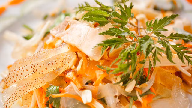 Sứa là loài hải sản nhiều tua, thân dạng keo trong suốt, chứa nhiều nước, sống trôi nổi trên biển, nhiều nhất ở vùng biển lặng sóng. Tại Việt Nam, sứa biển được sử dụng khá phổ biến để chế biến một số món như nộm, lẩu, canh,… Nhưng cách chế biến công phu, đặc sắc nhất phải kể đến gỏi sứa đỏ Hà Nội và bún giấm nước Huế.