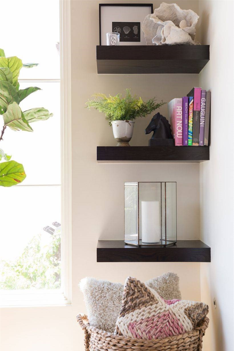 Những chiếc kệ góc tận dụng tối đa khoảng trống. Phòng ngủ nhỏ được gắn thêm kệ góc sẽ là không gian lý tưởng để cất trữ đồ đạc. Chúng có thể được sử dụng để giữ các vật dụng nhỏ hoặc lớn nằm rải rác làm căn phòng thêm bừa bộn.
