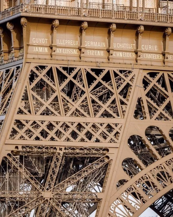 Tên của 72 nữ khoa học gia Pháp sẽ được khắc lên phần phù điêu bên ngoài tầng hai của tháp Eiffel, tại vị trí hiện đang vinh danh 72 nhà khoa học nam, theo đúng phong cách thẩm mỹ của kiến trúc sư Gustave Eiffel - Ảnh: X