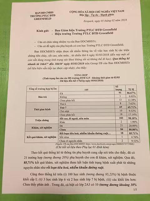| Biên bản phụ huynh gửi ban giám hiệu về sự việc (ảnh: PHCC) |