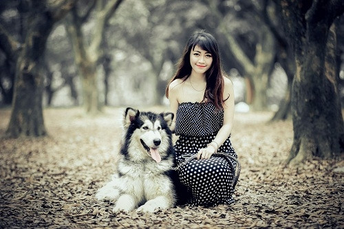 Vì thế, cô bạn 9X xinh đẹp thường sang nhà bạn mình là Quang Minh và chơi với Xám - chú chó lớn thuộc giống Alaska.