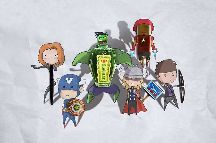 Tự nhận là một fan bự của bộ phim bom tấn "Biệt đội báo thù", Quang Huy đã dùng chất liệu sáng tạo là những vật dụng cực kỳ quen thuộc, có phần gợi những kỷ niệm xưa cũ của đất nước thời kỳ còn khó khăn để làm nên những tác phẩm sinh động, ăn theo các nhân vật trong bộ phim nổi tiếng.