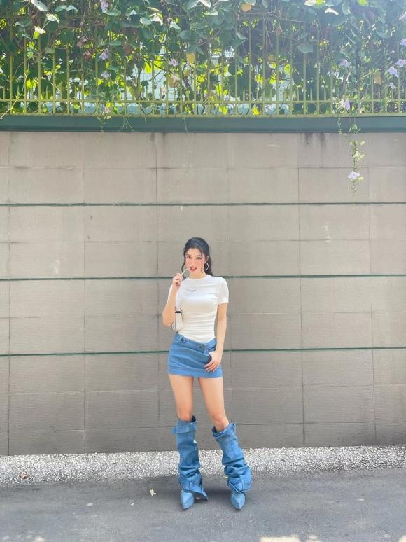 Dù là đi dự sự kiện hay đi dạo phố, Phương Nhi đều ưu tiên cho những set váy ngắn để khoe trọn đôi chân thon thả.