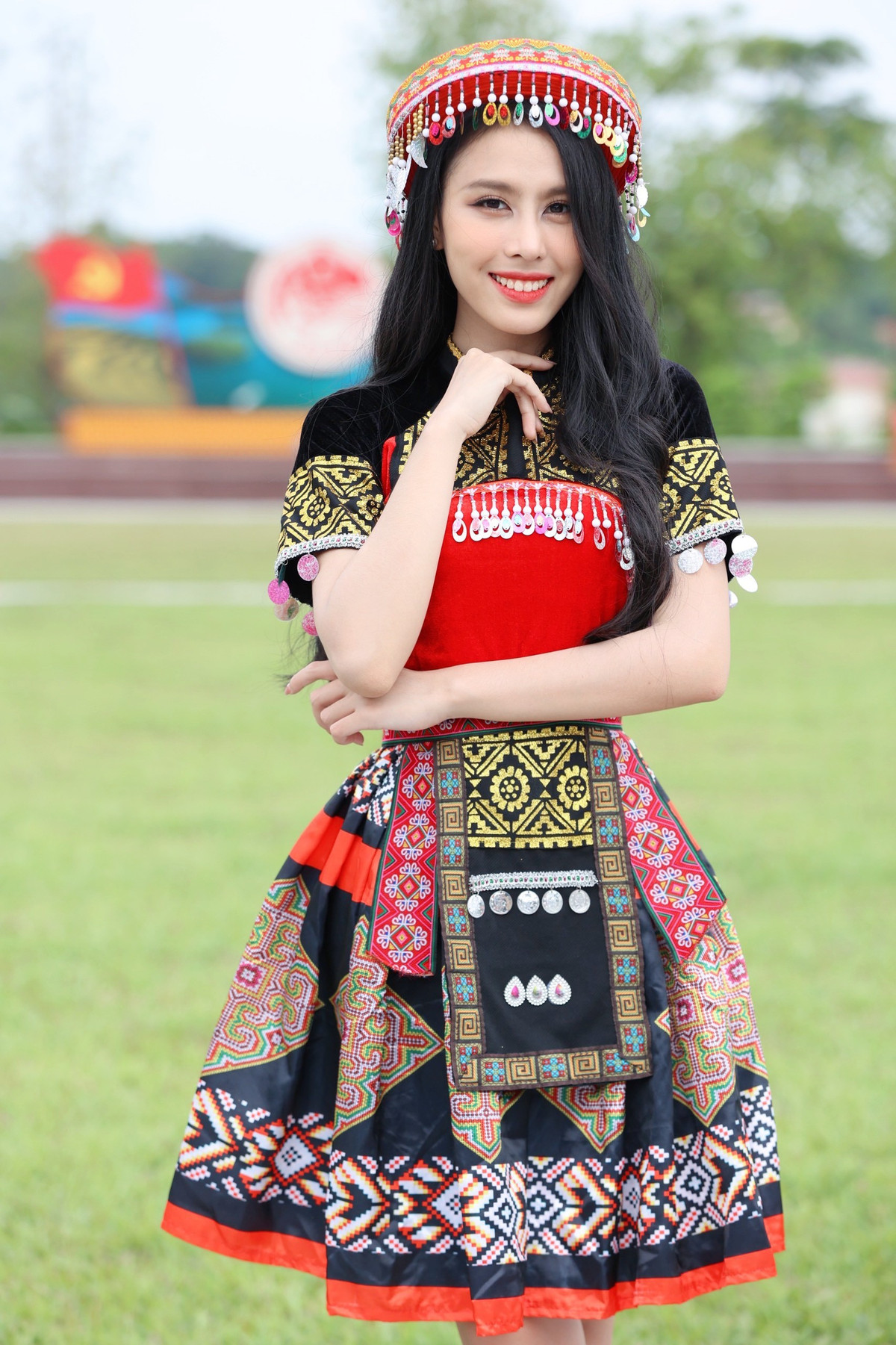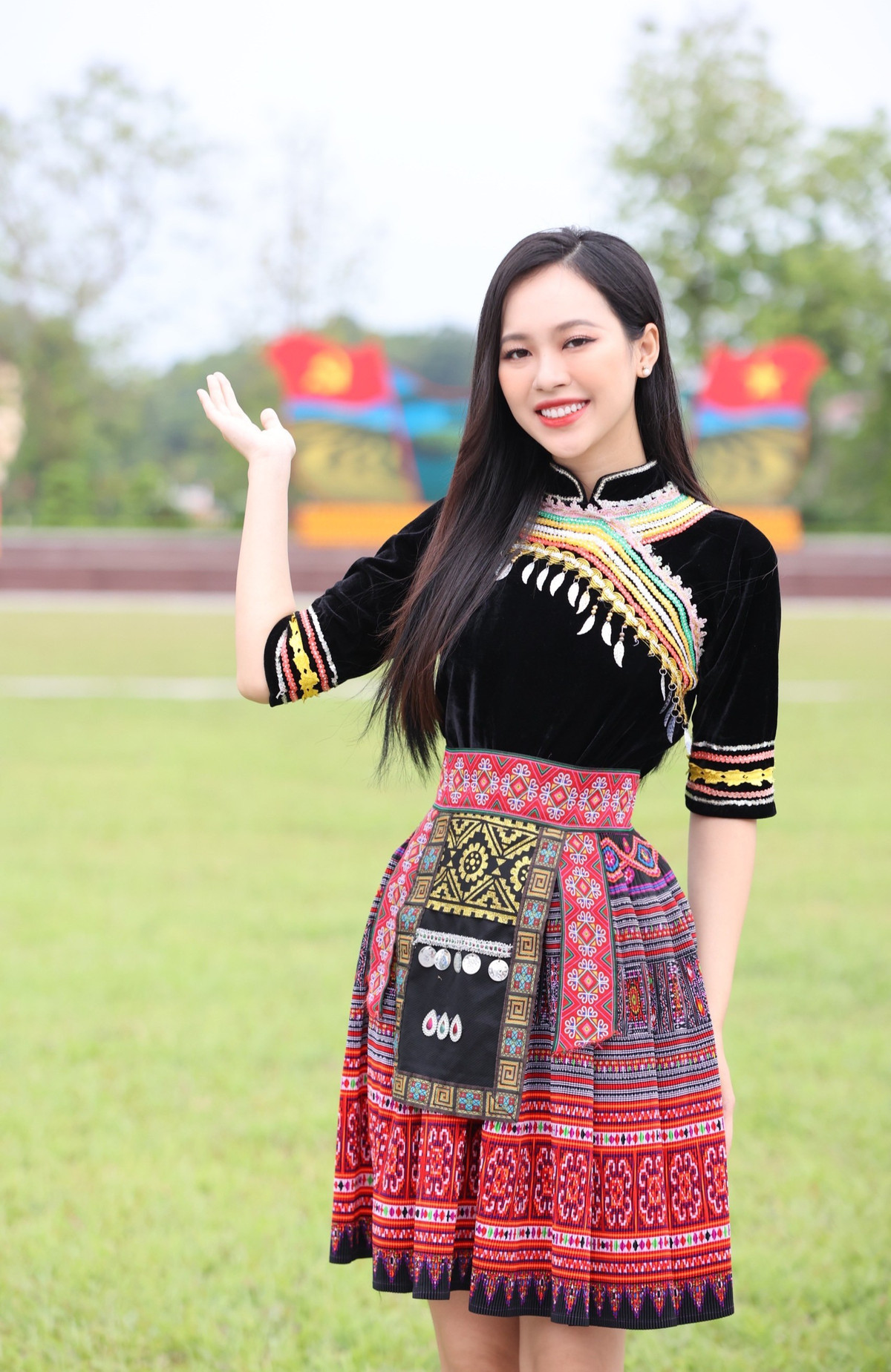Á hậu Thùy Linh nền nã với trang phục thổ cẩm. Người đẹp chia sẻ, Yên Bái có nhiều lợi thế về danh lam thắng cảnh, di tích lịch sử và các sản phẩm du lịch độc đáo. Với tiềm năng và thế mạnh sẵn có của thiên nhiên và con người Yên Bái, cô tin rằng vùng đất này sẽ luôn là điểm đến thân thiện và hấp dẫn với du khách trong và ngoài nước.