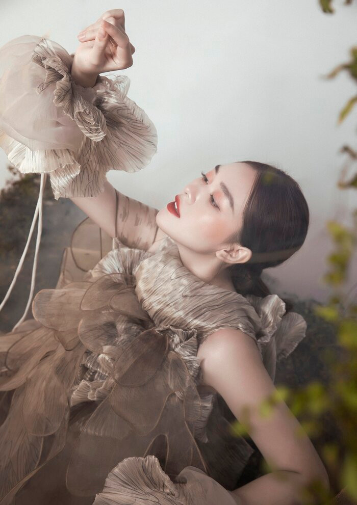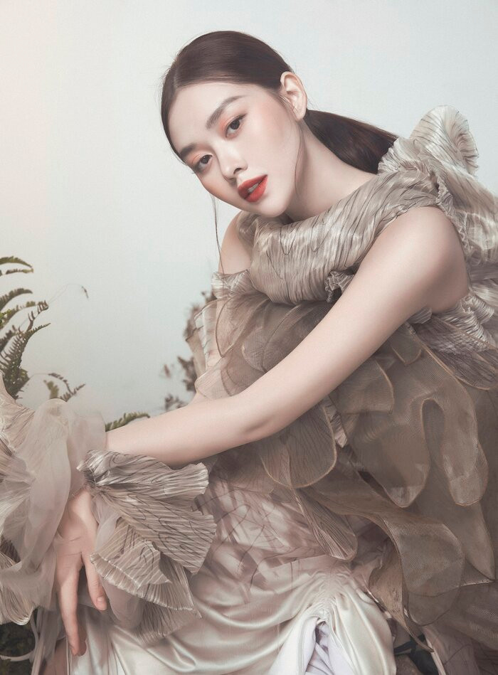 Sở hữu vóc dáng thanh mảnh, Tường San như được phát huy hết thế mạnh của mình khi diện những thiết kế đầm dài kèm chất liệu mềm mại. Gương mặt thanh tú cùng làn da trắng càng thêm cuốn hút hơn khi kết hợp với màu son đỏ.
