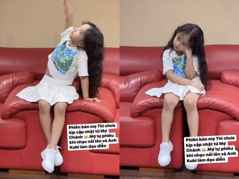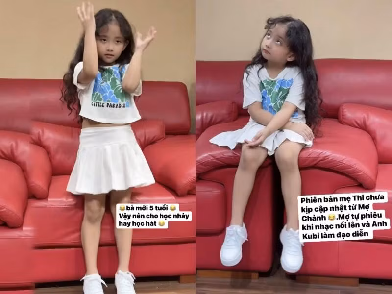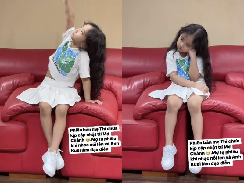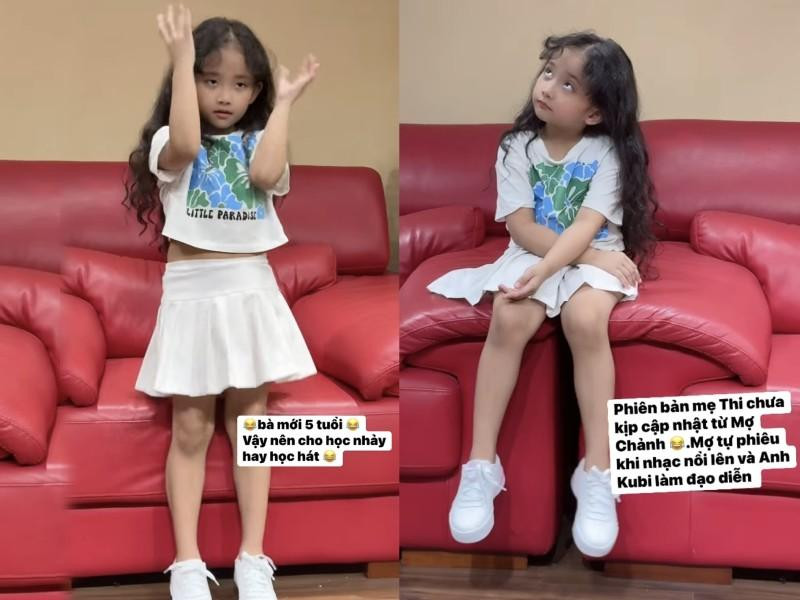 Mới đây, Khánh Thi đăng tải video bắt trend, nhảy theo nhạc của ái nữ. Cô cho biết: 'Phiên bản mẹ Thi chưa kịp cập nhật từ Mợ Chảnh (biệt danh của Anna - PV). Mợ tự phiêu nhạc nổi lên và anh Kubi làm đạo diễn. Bà mới 5 tuổi vậy cho học nhảy hay học hát'.