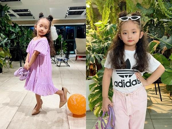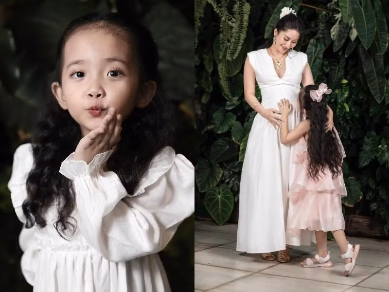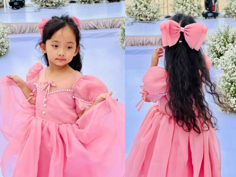 Bên cạnh biểu cảm đáng yêu, người xem còn chú ý đến mái tóc dài thướt tha nữ tính của cô bé. Lên 5 tuổi, con gái Khánh Thi sở hữu suối tóc phủ kín lưng, uốn xoăn bồng bềnh. Chỉ cần tạo kiểu đơn giản, bé Anna đã trông xinh xắn hệt như "công chúa tóc mây".
