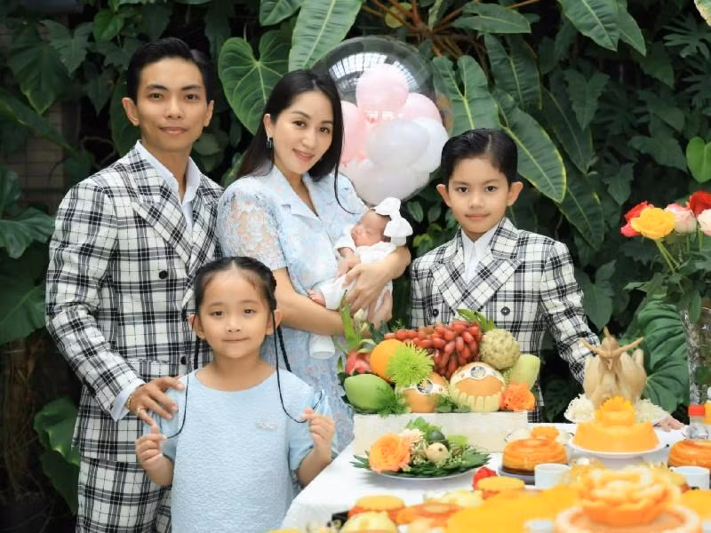 Hình ảnh cả gia đình hạnh phúc trong tiệc đầy tháng của em Lisa. Ảnh: Internet
