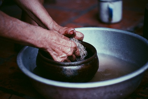 83 tuổi, bà Ngô Thị Hiền (Bắc Giang) thuộc lớp người “kì cựu” trong trại phong Qủa Cảm. Hơn 70 năm mắc bệnh là hơn 70 năm bà sống giữa những nỗi đau thể xác và tâm hồn. Ngày ấy, dân làng cho rằng bà “mắc bệnh ma ám” nên ra sức xua đuổi. May mắn gặp ông Hoàng Văn Thỏa (Hưng Yên) cùng chung cảnh ngộ không họ hàng, con cái, đôi bạn dọn về ở cùng, giúp đỡ, an ủi nhau trong suốt 5 thập kỉ. Nhắc đến ông Thỏa – người bạn đời quá cố gần 1 năm trước, bà không kìm nổi dòng nước mắt.