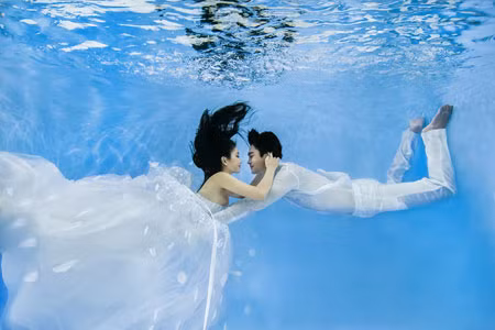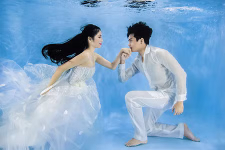 Chụp ảnh cưới dưới nước có thể là một lựa chọn cho mùa cưới sắp đến gần.