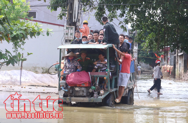 Hình ảnh về những chiến sĩ Công an đã để lại hình ảnh đẹp trong tâm trí người dân vùng rốn ngập Chương Mỹ.