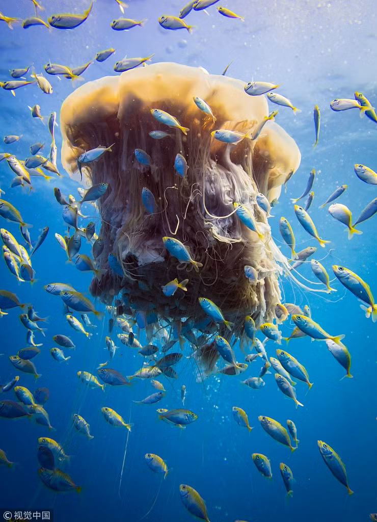 Có thể thấy, những con cá nhỏ thực rất thông mình và cũng chính nhờ thế, nhiếp ảnh gia dưới nước tại Thái Lan mới ghi lại được hình ảnh độc đáo và thú vị này, khi rất nhiều con cá nhỏ ẩn nấp dưới xúc tu dài hàng chục mét của sứa bờm sư tử để lẩn trốn kẻ thù, tìm sự bình yên.
