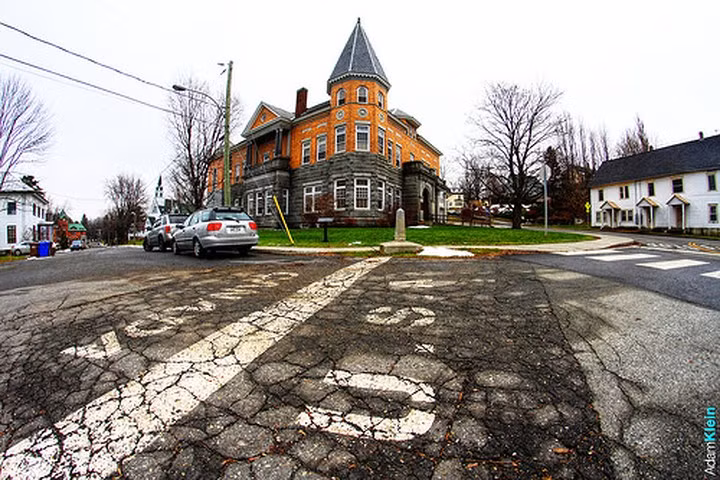 Nếu bạn là người Mỹ, bạn sẽ nói thư viện nằm ở "93 Caswell Avenue, Derby Line, Vermont", và nếu bạn là người Canada, bạn sẽ nhấn mạnh rằng, nó nằm ở "1 rue Church Street, Stanstead, Quebec".