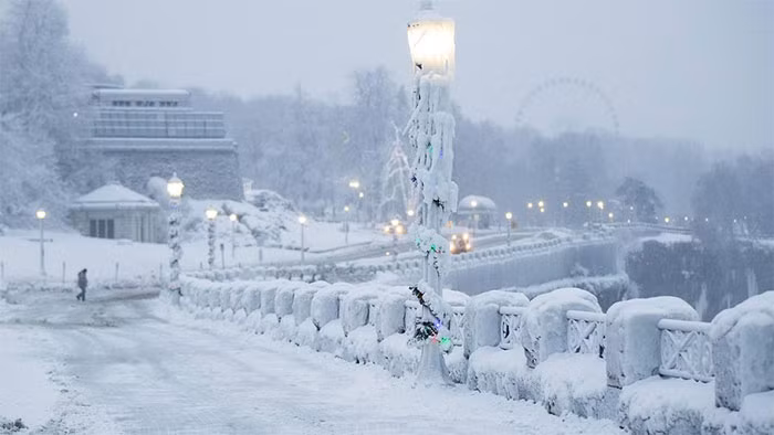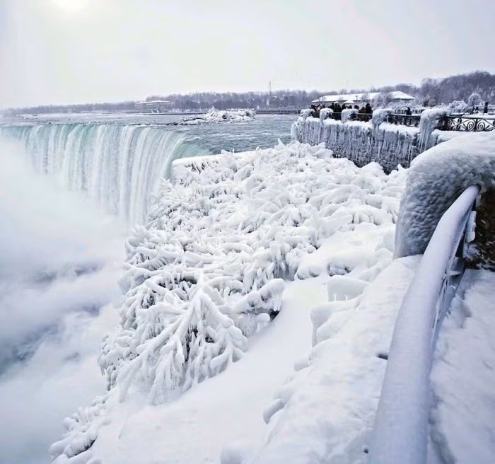 Thời tiết lạnh giá cũng tạo ra khung cảnh thiên nhiên kỳ thú tại thác nước Niagara nổi tiếng, khi mọi thứ đều bị đóng băng trắng xóa.