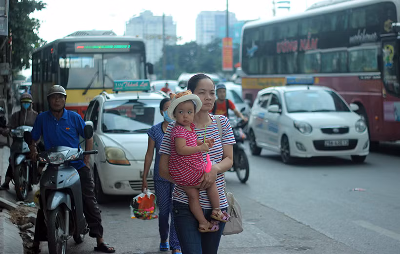 Nhiều em nhỏ vật vờ trên vai mẹ sau khi vượt hàng trăm cây số từ quê lên Thủ đô sau kỳ nghỉ lễ kéo dài.
