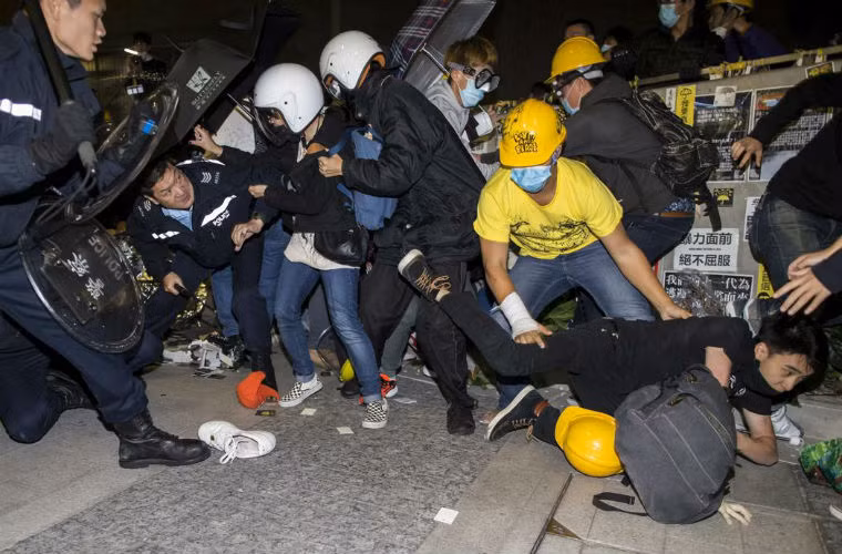 Ảnh cảnh sát Hồng Kông ngăn người biểu tình chiếm nhà công quyền